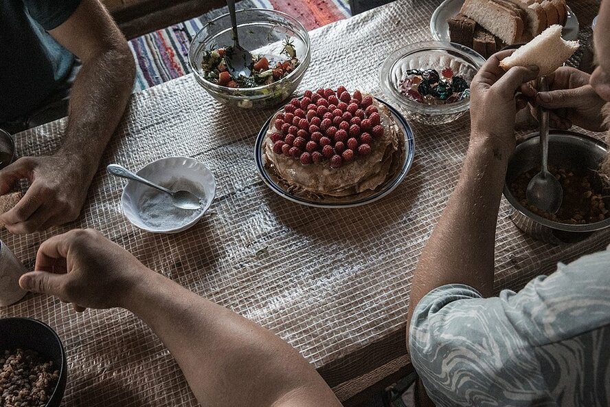 «Каждый здесь отдает себе отчет, что это дело, которым стоит заниматься», – добавляет его жена Надежда. «Есть ощущение, что мы хоть что-то реальное делаем для своей истории и культуры». Денис и Надежда приезжают в Зачачье всей семьей, с детьми Никоном и Лукьяном, с кошкой Белкой, уже второй год. Для Дениса – это основная работа, для Надежды – возможность поучаствовать в достойном деле в качестве волонтера. Она готовит еду для мастеров, пока они работают. Кроме того, для них обоих очень важно показать детям, что есть альтернатива жизни, погруженной в гаджеты, понемногу их приучить быть в атмосфере созидательного труда. «Мне кажется, что многие берут с собой детей на реставрации ради соприкосновения. Задача родителей – дать детям альтернативу, чтобы они были здесь и сейчас, увлеклись каким-то реальным делом», – говорит Надежда.